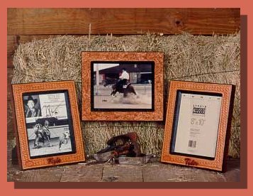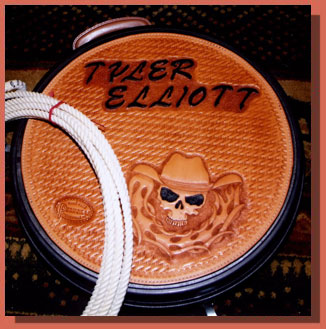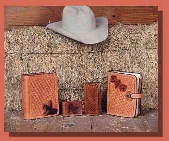 Our custom Leather Gifts and personal accessories are made with the same care we take with our saddles. These are a few of our basic leather items. They can all be personalized with your logo, letterhead, action photo or brand. They are great for awards! Suitable for the the cowboy in your life or for the individual who just yearns for the romance of the "West" in their life. Please feel free to contact us with your ideas and art work for an individual estimate. |