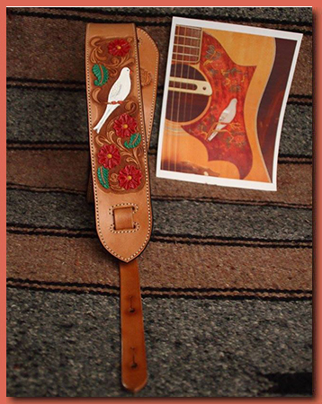We are located in the heart of the Texas music scene and are frequently asked to make one-of-a-kind guitar straps.